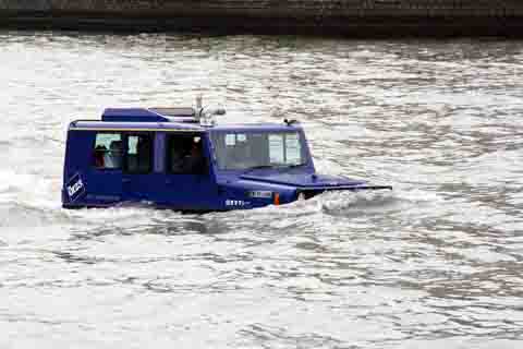 水面を沈みそうに快走するタクシー最初見たときは