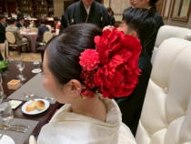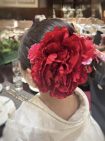 お客様の声ヘアアクセサリーが素敵!と当日たくさん言ってもらいました!会場内のお花も赤を多く取り入れていたため、 会場の雰囲気にとても合っていました とても華やかで素敵なヘアアクセサリーでした。 ありがとうございました! PS: N様ご夫妻様より |