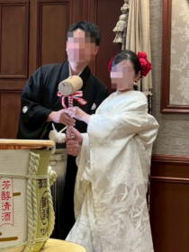 | 無事、式を終えもとの日常に落ち着きました。 ブーケのほうは式前日に姉が届けてくれ手にすることができました。 期待通り、とても素敵なブーケで姉が作成してくれたこともあり、 宝物となりました。 その時の形で保存できるプリザーブドブーケを結婚式で 持つことが夢でしたのでこれからも大切に保管したいと思います。 本当にありがとうございました。 私ども夫婦の写真を添付いたしましたのでぜひご覧ください。 PS: Kご夫妻様より |