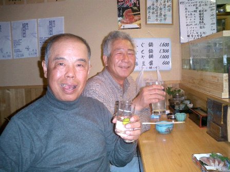 「かざぐるま」の横地船頭が迎えに来て呉れ一緒に寿司屋 の「魚河岸」へ行き、早速生ビールをグビ〜!!