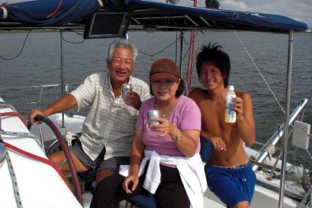 東港の防波堤に係留。お盆が過ぎ日曜日と云うのに、ガラガラで、もうスッカリ秋の雰囲気です。真夏は超短いなあ〜!