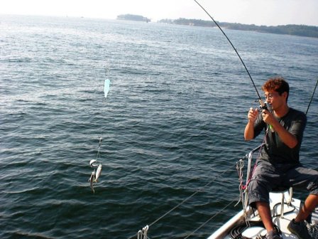 各レース艇を横に見ながら、レースばっかりがヨットの遊びじゃないんだ、臨機応変は?と思いつつ佐久島へ釣りの為に直行です。