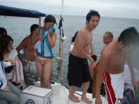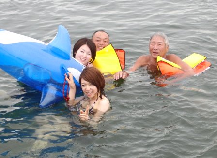海の中での生ビールも、美味いもんですヨ!但し、立ち泳ぎですから、体力に自身の無いお方は、ご遠慮下さい?!