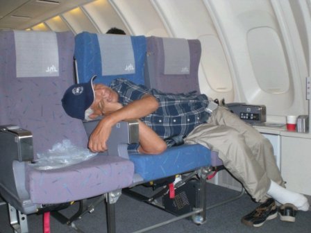 医者2人、看護師付きの超安心旅行です?!非常口のところは足元が広いし、お隣がいなかったので、ユッタリぐっすり。