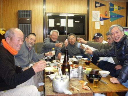 焼酎2升と適当な肴を持って、7人の侍ならぬ酔っとるマンの待つ、全国のヨットクラブでも珍しい海に浮ぶクラブハウスへ。