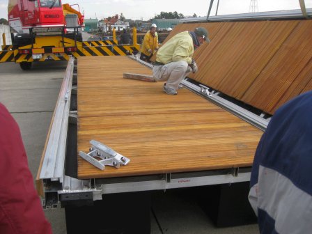 これが旧Aポンツーンで、ジェットポンツーンです。出来たポンツーン本体を繋げて、モーターボートで曳航して行きます。