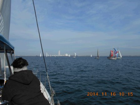 ブルーウオーター派?の私はレースは苦手です、クルーに空気が伝わるのか?スタート時間に間に合わず殆どビリでスタート。