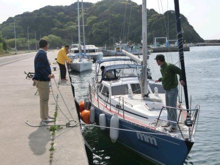 ラグナ・マリーナから串本港を目指したものの、明日からの雨天予報で戻って来たとの事。先に着岸して舫いを取る。