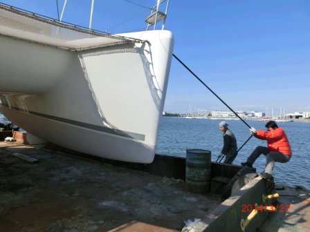 19日天気が良かったので、船底塗装作業の進み具合を見にハーバーへ、土曜日に予定通り下架出来るかチェックです。