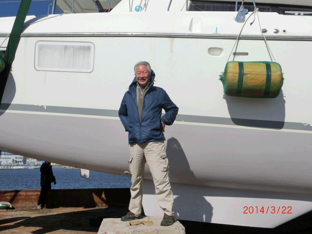 一安心で、クレーンを操縦してくれた木下船舶の社長をパチリ。ついでに聞いたところボヘミアンの重量は15トンだそうです。