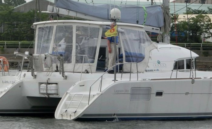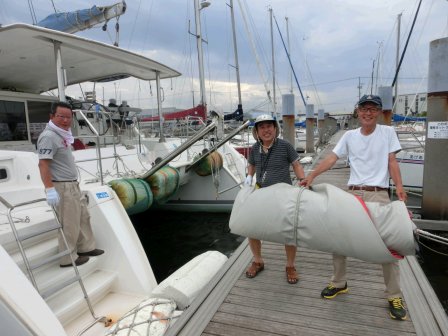 御津マリーナの「とるちぇどめーる」Oさんが、ラグナマリーナの「インデペンデンス」のIさんと一緒に、ボヘミアンの隣に到着。