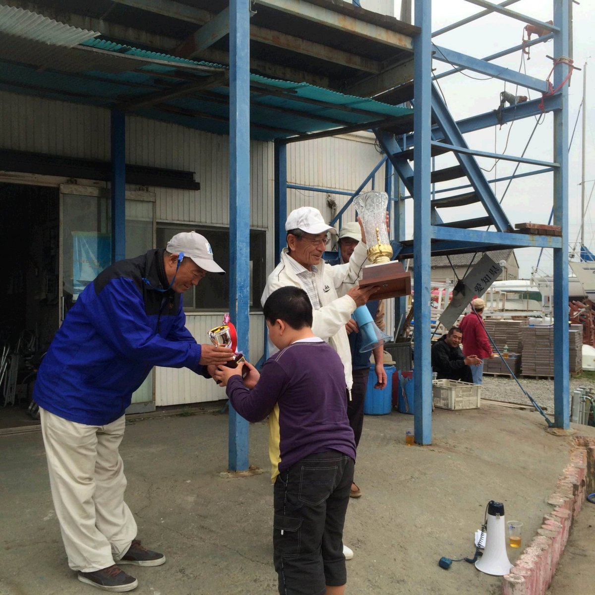 会長の室ちゃんから、優勝艇の富貴ヨットクラブ「June BrideⅣ」へカップ贈呈。