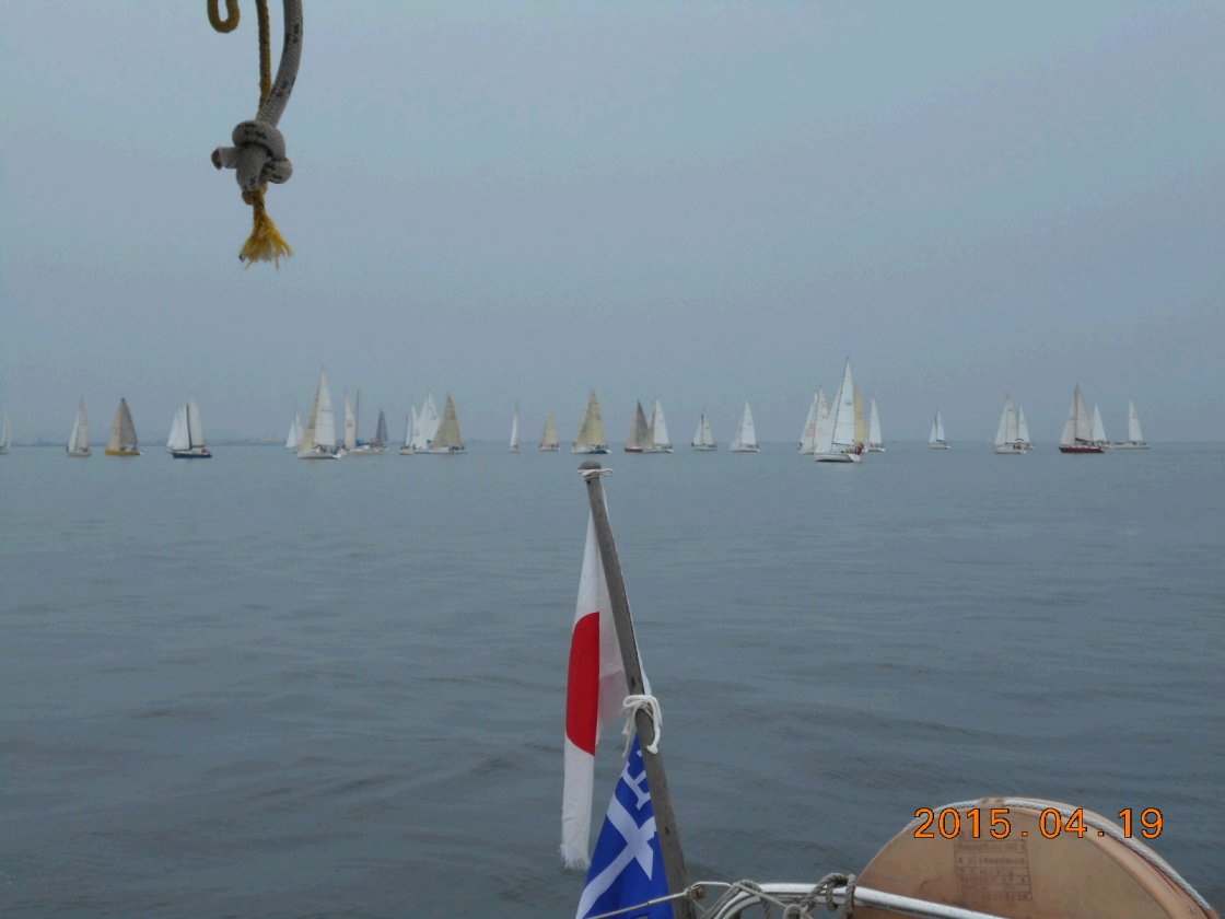 スタートラインを越えても、風が弱い為悪戦苦闘の団子状態が中々解消出来ず。