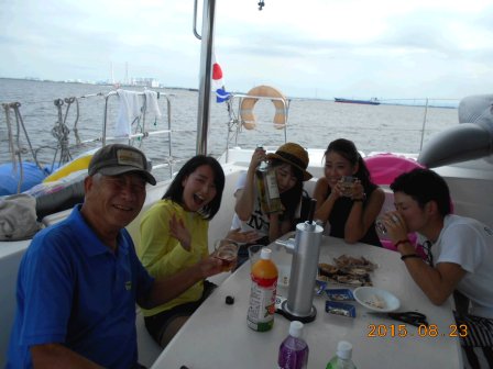 この暑さで死んでしまい悪くなるから昨日中に茹でて、今日ヨットに持って来て貰う為です。