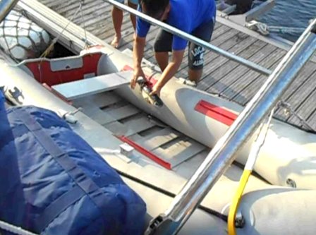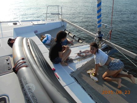、船の掃除です。私は、女房が旅行中で老犬ジローが寂しく待っているので、