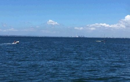 テンダーに乗って沖の潜水漁船に行き、三河湾名物の「大アサリ」を買い付けに。