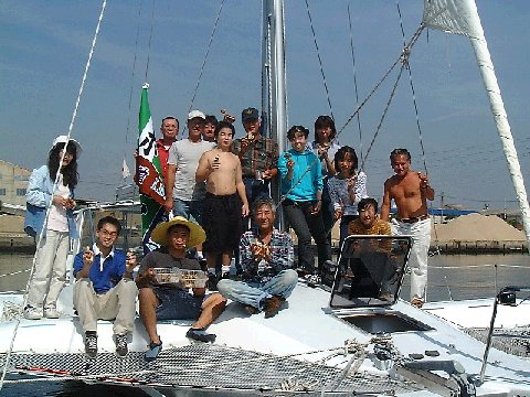 碧南ヨットハーバーポンツーン上、新ボヘミアンVの前で、