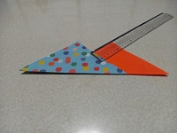 K羽根の部分を前が2分の1、後ろが3分の2位に折ります